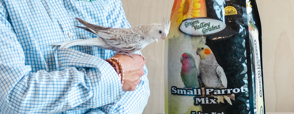 A quality seed mix such as Green Valley Grains’ Small Parrot Mix