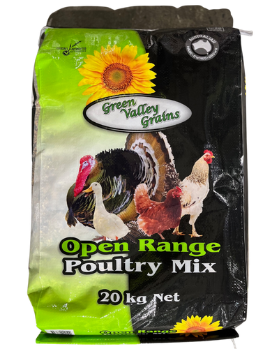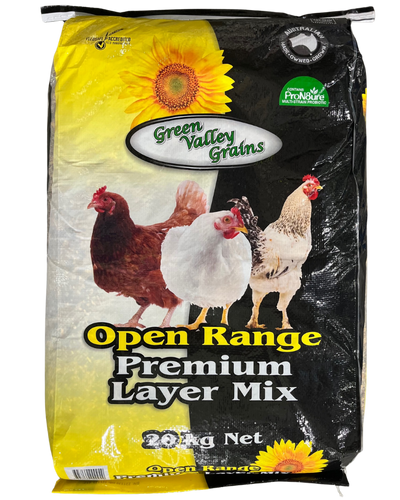 We have a specialized poultry range featuring all-natural, Australian-grown mixes like the Open Range Premium Layer Mix, which is enriched with ProN8ure® multi-strain probiotics to optimize digestive health and egg production.